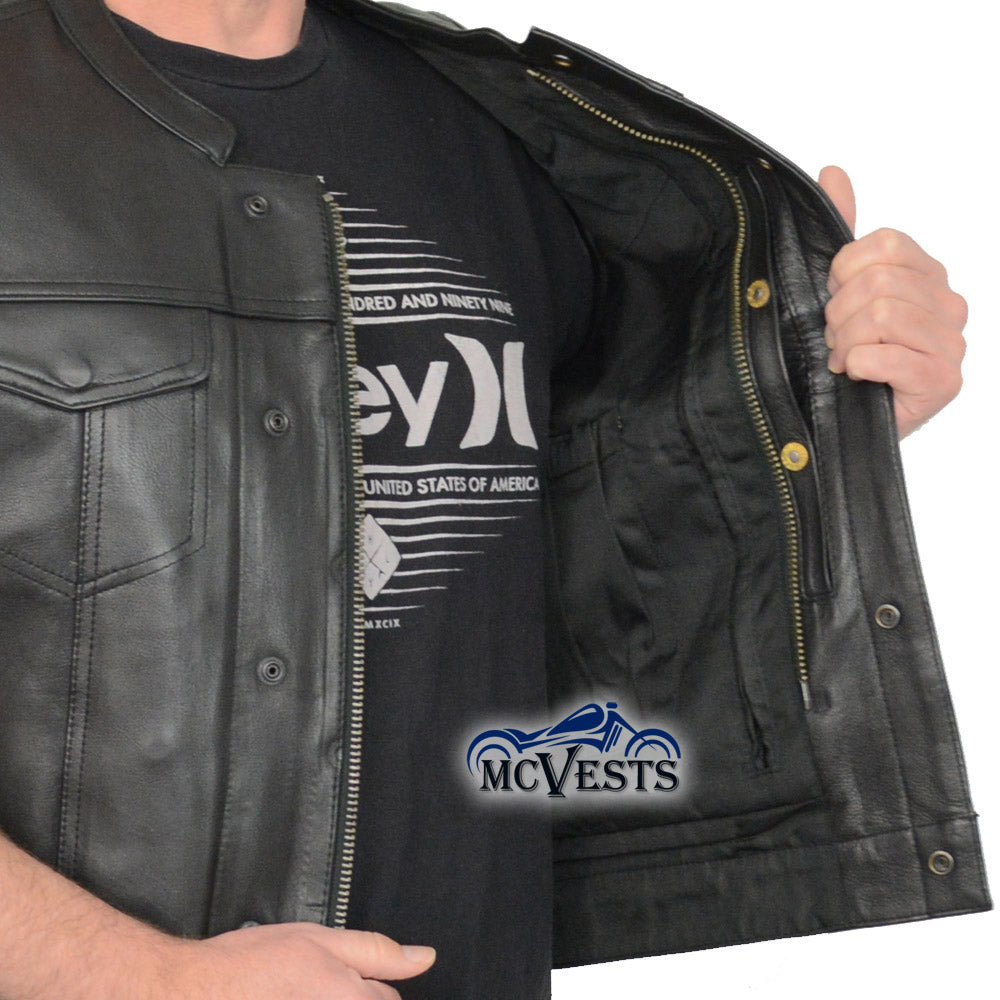 Crafted from premium leather, the Big Boy Vest maintains the same high-quality construction and attention to detail as our standard vests. It features concealed carry (CCW) pockets, reinforced seams, and a classic club-style cut that looks great on and off the bike. Whether you're cruising cross-country or riding with your club, this vest offers the extra room and extended length you need without compromising on performance or protection.