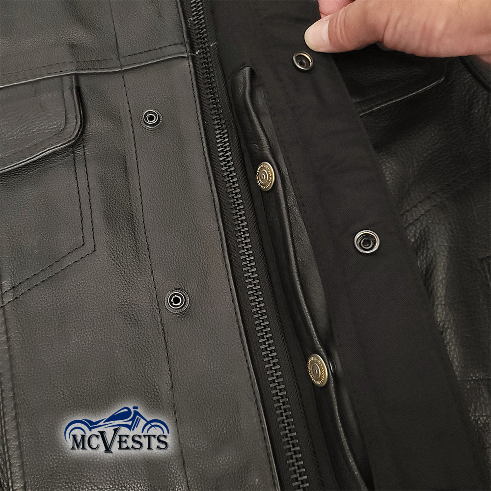 Our GUN541 vest is made from the absolute best possible quality cowhide leather. We use platinum naked cowhide. Naked cowhide is the best of the cowhide leathers. Platinum just refers to a thicker plusher cut of the naked cowhide which gives the vest a little heavier feel and makes it more plush and durable.