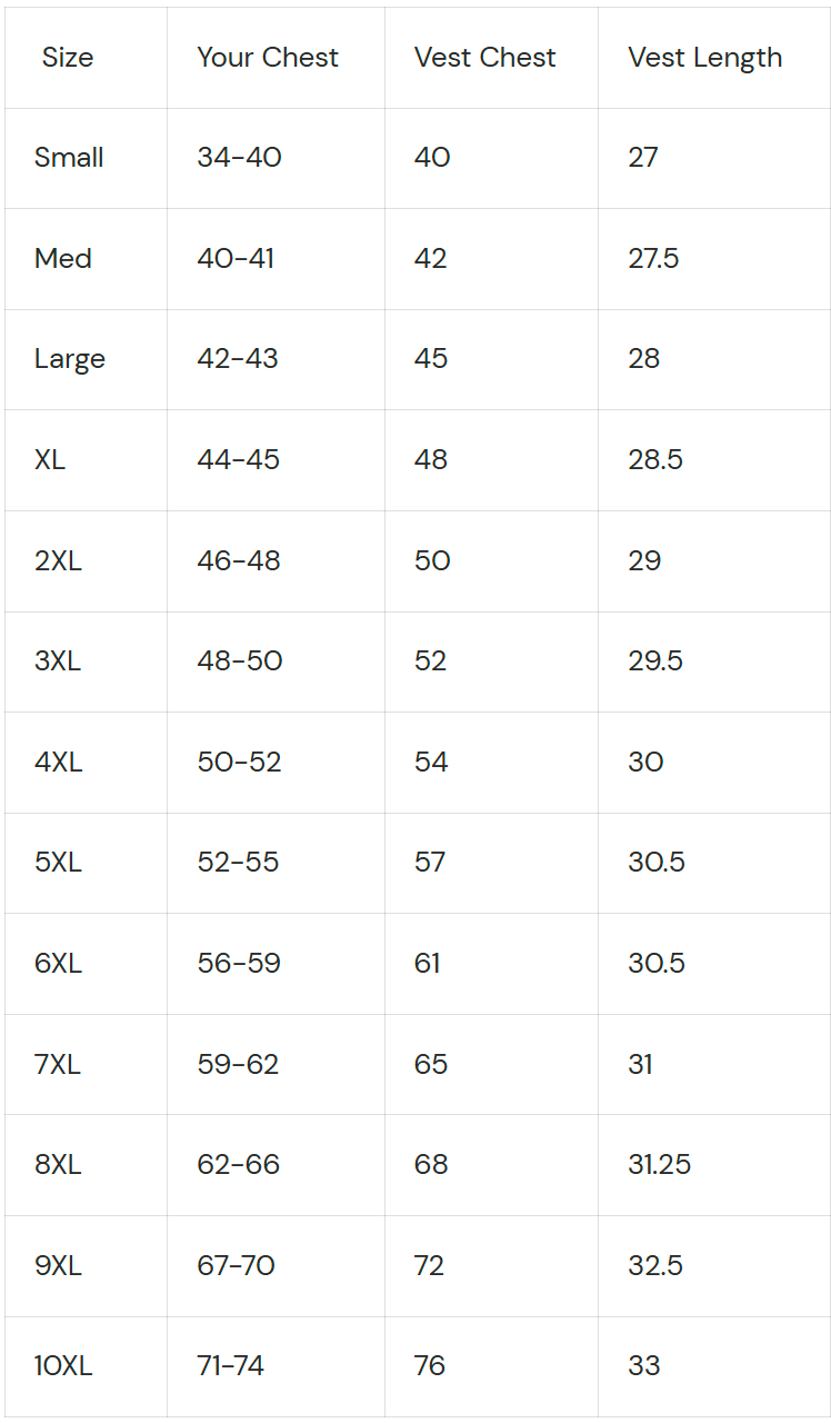 - Tall sizes. 2 inches taller length than our 500 and 501 vests