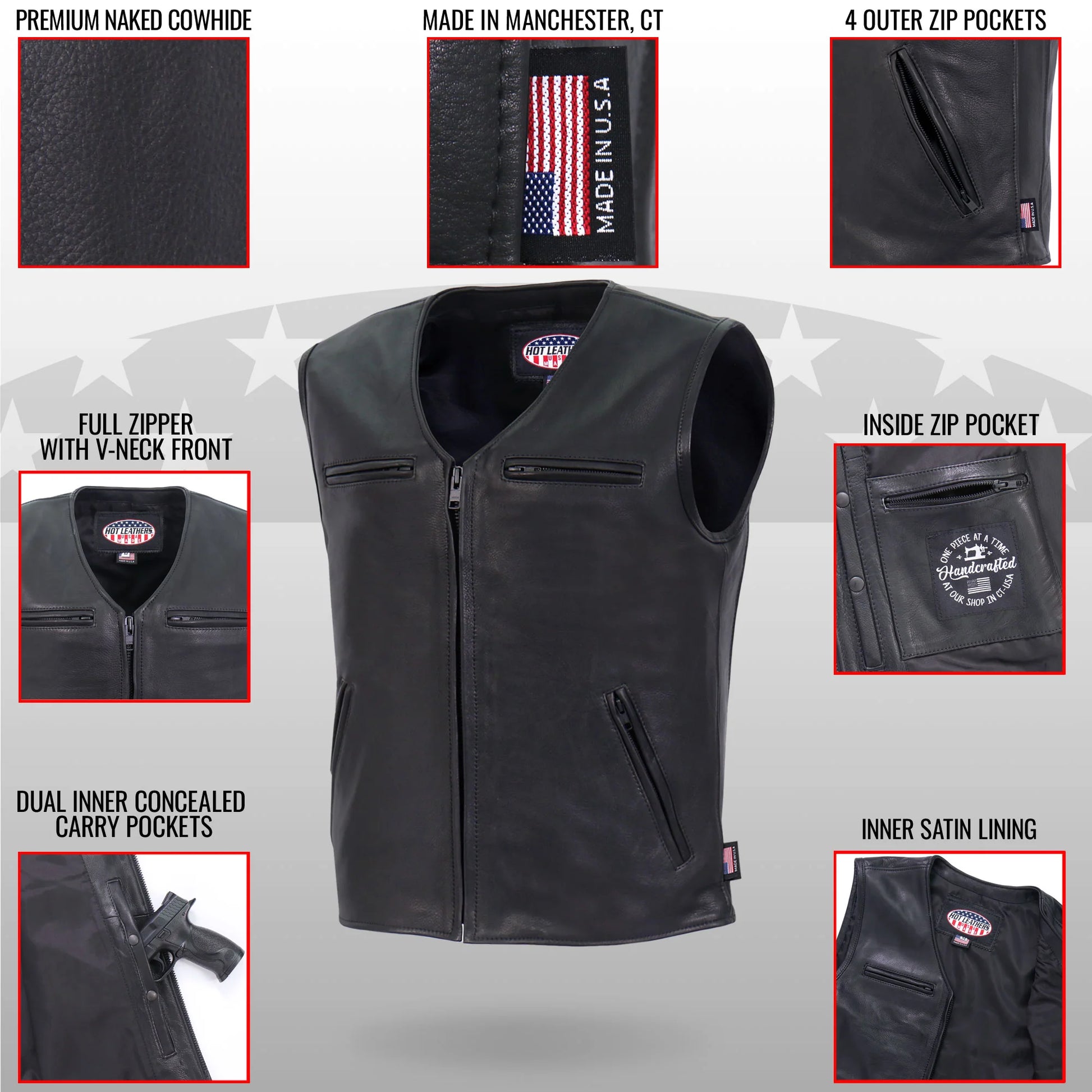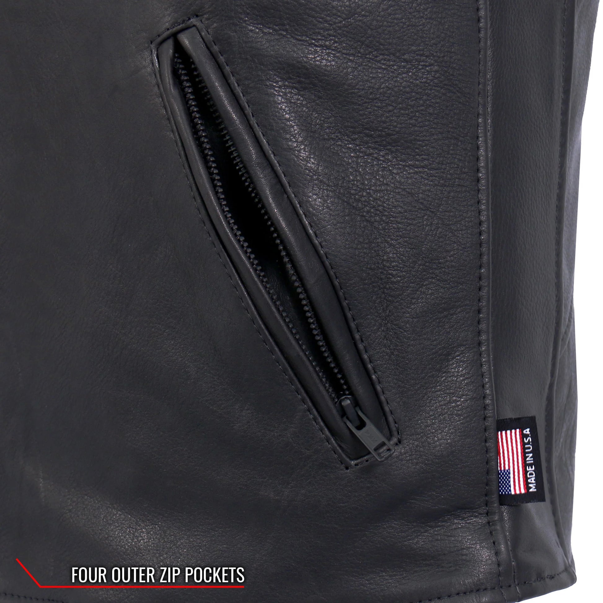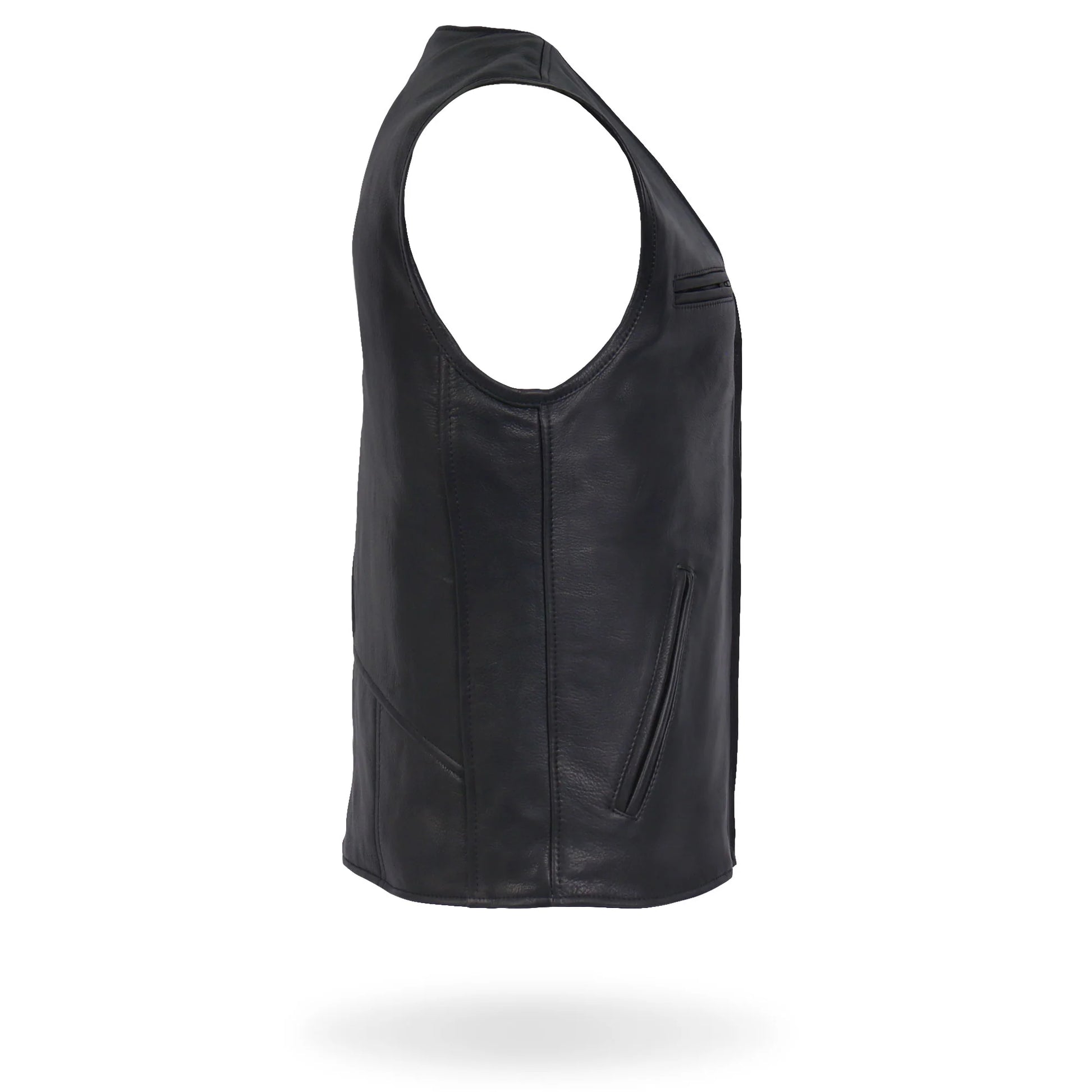 Hot Leathers all new American Made men's club style leather riding vest. This vest is built using heavyweight naked cowhide. This vest is super soft for that already broken in feel. It comes fully lined with a soft nylon lining. Full one piece back gives you plenty of room to have your club colors.